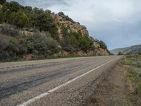 A gloomy day in rural Utah, with a grey sky casting a somber mood over the landscape. The road stretches into the distance, surrounded by mountains and nature. A glimpse of the diverse beauty of the USA.