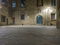 This is an image of a historic street in Barcelona, Spain. The gothic architecture and stone walls of the buildings create a dark and mysterious atmosphere. The hard shadows and street lights cast a dramatic light and shadow play on the cobblestone road. The old town features charming facades and fixtures, showcasing the city's rich history. This photo captures the essence of Barcelona's unique and enchanting charm, making it a perfect representation of the city's historic architecture.
