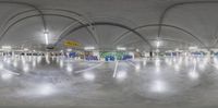 a very big white room filled with graffiti covered walls and floors - - at night