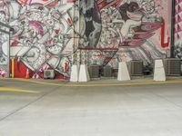 A vibrant graffiti mural painted on a concrete wall in the streets of Detroit. The art district comes alive at night with artificial light illuminating the colorful profiles and designs. A perfect representation of urban street art in the USA.