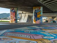This stock photo features a vibrant graffiti wall located in Taipei, Taiwan, showcasing the urban art scene in the city. The image captures the colorful artwork covering the wall, blending various graffiti styles, and adding a lively touch to the surrounding urban environment. The graffiti wall is situated close to a river, enhancing the scenic beauty and providing an open space for art enthusiasts to appreciate the street art. The art district where the graffiti wall is situated is part of Taipei's urban design, creating a unique atmosphere that combines creativity and city life. Captured during the break of day, the image showcases the beautiful dawn sky with clouds hanging above the city, complementing the graffiti art on the wall. The asphalt surface of the plaza offers a perfect setting for this artistic display.