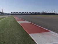 This is an image of a clear sky overlooking a grandstand at a race track. The perfectly lined asphalt road surface leads to the stadium where races are held. The grassy field surrounding the track provides a picturesque backdrop. This photo captures the excitement and energy of racing events. It represents a vibrant scene and showcases the infrastructure and structures associated with race tracks. The clear sky adds a touch of beauty and calmness to the image.