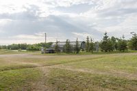This image captures a wide open space in Ontario, Canada. On a lush grass surface, a big bus is parked in the middle of a field. The rolling landscape is dotted with trees, adding to the rural charm. In the distance, the skyline of Toronto can be seen. The clear sky above creates a serene atmosphere, perfect for recreational activities. This property offers a natural environment for various sports and outdoor leisure. Whether it's skiing in winter or enjoying the vast land lot for other purposes, this is a picturesque location in Ontario.
