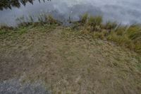 an area with grass, weeds and water on it that looks like it's growing