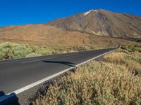 This stock photo features a picturesque landscape of a highland slope in Tenerife, Spain. The lush vegetation and plant community, including grass and various plants, cover the slope, creating a beautiful natural scene. The clear sky above gives a sense of tranquility and openness. The image showcases the rural beauty of the Canary Islands, a Spanish archipelago located in Europe. This scene is specifically captured in Tenerife, a popular destination known for its low mountains and stunning national park. The grass surface and asphalt road add to the overall charm of the nature-filled environment. Perfect for travel brochures or articles about the Canary Islands or nature in Spain.