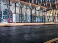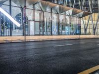 A rainy night in the bustling city of Guangzhou, with neon lights reflecting on the wet pavement. Futuristic architecture and modern storefronts create a vibrant urban atmosphere in this lively business district.