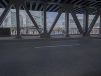 This is an image of a cityscape in Hamburg, Germany. The photo showcases the architecture of HafenCity and Speicherstadt, with its iconic box girder bridge and concrete underpasses. The road surfaces are made of asphalt and concrete, with lines and shadows adding a graphic touch to the scene. Graffiti and street art can be seen on the walls, providing an urban and artistic atmosphere. The steel structures and iron wheels of a stadium can also be spotted in the background. This photo captures the urban and modern feel of Hamburg's cityscape.