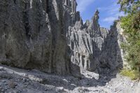 This is an image of a rugged mountain landscape with a dirt road winding through it. The clear sky above highlights the highland terrain, with rocky outcrops and formations visible along the slopes. The vegetation in the area is sparse due to the gravel surface and rocky bedrock. This off-road track offers a thrilling adventure for nature enthusiasts. With its glacial canyon and fault formations, this mountainous region is a stunning example of natural beauty. Explore the untamed wilderness and experience the majesty of the rock surface in this captivating photo.