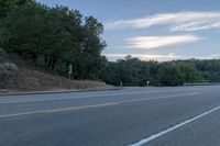 This stunning stock photo captures the break of day as the sun rises over a scenic highway. In the foreground, a man on his bike adds a sense of movement and adventure to the scene. The asphalt road stretches into the distance, surrounded by breathtaking landscapes of rolling hills and lush vegetation. The tall trees along the roadside create a picturesque setting, enhanced by the fluffy clouds in the sky. The road surface is smoothly paved, with a visible shoulder and a tar-covered slope. This captivating image showcases the beauty of rural areas and depicts a common mode of transport. Perfect for showcasing concepts related to transportation, adventure, and exploration.
