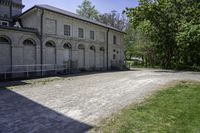 This stock photo showcases a beautiful historic architecture in Ontario, Canada. The building is a classic architecture with a grand facade and windows. The property is surrounded by lush green grass, trees, and vegetation. The clear sky provides a perfect backdrop for this tourist attraction. The road surface and gravel path lead to the entrance of the building. This picturesque location is a must-visit for tourists in Ontario, especially in the cities like Toronto and Hamilton.
