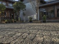This image captures the charm of a historic residential area in Lijiang, China. The classic architecture and cobblestone streets of the old town provide a picturesque scene. The open spaces are adorned with trees and well-manicured grass, creating a tranquil atmosphere. As the dawn breaks, the clear sky illuminates the old buildings and adds to the beauty of the surroundings. The area is known for its well-preserved structures and is a popular destination for tourists seeking a glimpse into China’s rich architectural heritage. This photo showcases the unique blend of old-world charm and urban design in Lijiang, China.