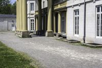 This photo showcases a historic building with impressive columns, located in Ontario, Canada. The building is surrounded by a walkway and features a beautiful entrance with steps. The front of the building is adorned with lush grass and stone. The architectural design of this residential property is reminiscent of classic architecture, making it a popular tourist attraction in the area. The clear sky and vegetated surroundings contribute to the overall charm of this picturesque location.