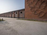 A classic architecture brick wall in an art district in China. The historic site showcases the urban design and composite materials used in the city. This warehouse turned property is a perfect blend of industrial and urban aesthetics.