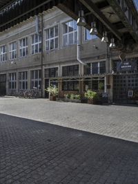 Classic architecture in Berlin, Germany. Cobblestone streets lined with historic buildings and cafes. Hard shadows create a dramatic urban design. A vibrant art district in the heart of Europe.