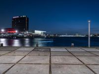 A stunning night view of a city in Holland, showcasing its magnificent architecture and vibrant city life. The city is beautifully reflected on the calm water of the river, with its buildings illuminated by street lights and artificial light. The dark, clear sky above highlights the silhouette of high-rise buildings and skyscrapers, adding a touch of mystery to the scene. The asphalt road and road surface lead towards the horizon, creating a sense of depth. The urban design and concrete structures blend harmoniously with the harbor and the jetty, giving the city a unique character. This image captures the essence of urban living in Holland, Europe.