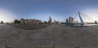 A stunning view of the cityscape in Holland, Netherlands. The image captures the modern architecture and urban design of the metropolitan area. The clear sky and sunrise provide a beautiful backdrop to the city's landmarks and infrastructure.