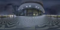 a big circular object in a very pretty place outside the city building at night,