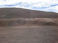 Riding a Horse on a Dirt Field in the Highlands with Shaded Hills and Clouds
