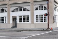 an image of a corner with traffic lights and a crosswalk in front of the building