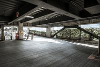 a empty warehouse area with stairs going up to it and concrete floors in front of the stairs