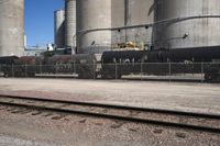 This stock photo showcases a clear sky day in Grand Rapids, Iowa, with industrial train tracks running through the city. The surface of the tracks is made of gravel and dirt, indicating heavy usage in the urban area. A train, locomotive, and railroad car can be seen on the tracks, showcasing the transportation and industrial activities in the region. In the background, a factory made of steel can be spotted, symbolizing the presence of an industrial sector. The photo gives a glimpse of the agricultural and iron industries prevalent in Grand Rapids, Iowa.