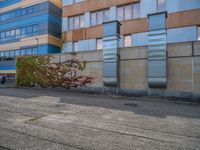 Industrial manufacturing warehouse in Europe, Germany. Concrete street leading to the storage depot surrounded by suburban vegetation. Hard shadows cast on the residential area under the clear day sky.