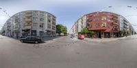A bustling intersection in downtown Berlin, Germany. The classic architecture of the buildings blends seamlessly with the modern urban design. The streets are filled with vehicles and pedestrians, creating a lively and vibrant atmosphere.
