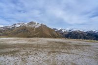 A gloomy day in Italy as grey skies cover the mountainous landscape. The open space is filled with vegetation, including trees and grass, creating a serene and tranquil atmosphere. The gravel surface adds texture to the scene.