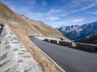 This image showcases a mountainous landscape in Italy, specifically the Stelvio Pass in South Tyrol. The winding road, made of asphalt, cuts through the picturesque mountain range, offering breathtaking views of the surrounding highlands and nature. The day is clear, with clouds forming elegant lines in the sky. Stone walls and Armco barriers provide necessary infrastructure and safety measures along the highway. This photograph captures the beauty of the Stelvio Pass, a popular transport route in Europe and a must-visit destination for nature lovers and adventure seekers.