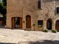 This image showcases the classic architecture of a quaint village nestled in the beautiful valley of Tuscany, Italy. The charming buildings and cobblestone roads are bathed in sunlight, creating a warm and inviting atmosphere. The profile of the village against the backdrop of the rolling hills and lush greenery is a testament to the picturesque landscapes of Tuscany. The well-maintained gardens add a touch of tranquility and beauty to this European scene. This photo captures the essence of a peaceful day in a traditional Italian village.