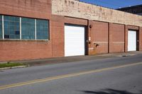 A suburban residential area in Johnson City, Tennessee. The neighborhood consists of brick houses with beautiful architecture. The streets are lined with asphalt roads, and there is an industrial warehouse with a loading dock in the distance.