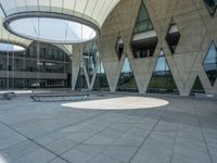 This stock photo shows an empty courtyard with two benches outside of a large building with glass walls. The urban design of Kaohsiung, Taiwan is highlighted in the image, with its concrete surfaces and modern glass walls. The hard shadows cast by the sunlight adds depth and dimension to the scene. The city life of Kaohsiung can be felt through this urban landscape, showcasing the blend of modern architecture and traditional Taiwanese culture. The glass walls reflect the bustling city, capturing the vibrant energy of this Asian metropolis.