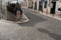 A charming cobblestone road in the heart of Lisbon, Portugal. The classic architecture of the residential area blends seamlessly with trendy shops and restaurants. A perfect place for tourists to explore and eat out.