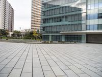 An open space in the heart of Lisbon, Portugal, surrounded by modern office buildings and skyscrapers. The square pavement contrasts with the high-rise structures, offering a glimpse into the city's urban design. A serene moment in the bustling business district of Europe's vibrant capital.