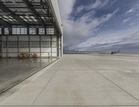 An aerial view of Los Angeles International Airport, showcasing the concrete architecture and open spaces. The blastwall on the hangar provides a contrasting surface against the clear sky. A perfect day to explore the interior of this iconic building.