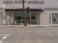 This is an image of the entrance to SAS Fish Avenue in Los Angeles, California. The classic architecture of the building features a beautiful facade with large windows. The road surface is made of asphalt and concrete, and it is devoid of vehicles, creating a sense of emptiness and tranquility. The street is lined with shops and storefronts, adding to the urban and metropolitan feel of the area. A street light illuminates the public space, creating a warm and inviting atmosphere. This photo captures the essence of the bustling city of Los Angeles.