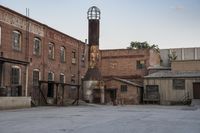 A classic example of Los Angeles architecture on a sunny day. The brick facade of a historic building stands tall in an industrial neighborhood. A clear sky accentuates the urban landscape.