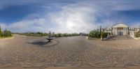 A classic architecture house in Los Angeles, California, surrounded by lush gardens and trees. The cloudy day adds depth to the landscape. The residential area offers a serene and peaceful retreat in the bustling city.