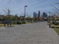 This is an image of the beautiful cityscape of Los Angeles, California, USA. The modern architecture is highlighted by the tall skyscrapers that dominate the skyline. The city streets are lined with asphalt roads and walkways, surrounded by residential neighborhoods and parks. In the distance, the mountains and wilderness provide a stunning natural backdrop. The clear sky above enhances the view of the city and its surroundings. This photo represents the perfect blend of urban and natural environments in Los Angeles.