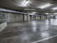 A view of the cityscape of Los Angeles, California, USA. The architecture features concrete buildings and roads. Open spaces with parking lots provide public spaces for recreation. Artificial light illuminates the concrete streets.