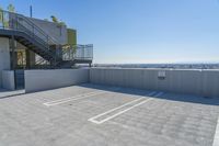 A clear sky illuminates the modern architecture of Los Angeles, California. The city's urban design is showcased through its buildings, houses, and open spaces. A parking deck stands out against the cityscape, while the stadium adds to the city's vibrant energy.