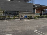 A view of a modern office building in downtown Los Angeles. The clear skies above highlight the sleek architecture and the bustling city life. The busy streets and parking lots reflect the urban design of this vibrant business district.