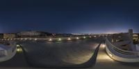 this is an image of the city at night time from a skateboard park at night