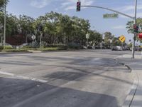 A sunny day in the bustling city of Los Angeles. The asphalt roads wind through residential areas lined with trees. The urban landscape is dotted with infrastructure and traffic lights. Contrails streak across the clear sky.