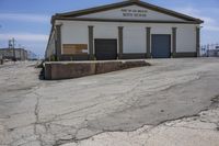 A sunny day in Los Angeles, California showcasing the city's diverse architecture. Residential homes and neighborhood properties line the asphalt roads, while industrial warehouses and factories dot the landscape. The city's industrial charm is highlighted by loading docks and warehouses near the harbor.