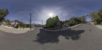 Los Angeles cityscape showcasing asphalt roads and suburban residential areas. Clear sky highlights open urban spaces. Discover the beauty of California's residential charm on this sunny day.