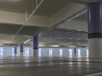 A modern architecture parking garage in Los Angeles, California. The large empty space, multiple floors, and pillars create a grand ambiance. The open door invites visitors to explore. Concrete streets and tints of gas fixtures add to the city vibe.