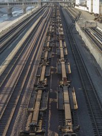 The urban metropolis of Los Angeles awakens at dawn, with highways and roads leading to iconic buildings. The high-rise skyline reflects against the iron and metal tracks of the train station, symbolizing the city's bustling transport and metropolitan area.