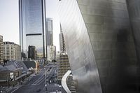 Aerial view of the vibrant metropolis of Los Angeles, California. The cityscape is illuminated by artificial street lights, showcasing its modern architecture and high-rise buildings. The bustling streets below are a testament to the city's vibrant urban life.