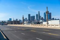 A view of downtown Los Angeles, California. The modern architecture blends with the city's urban design. High-rise buildings and skyscrapers create a stunning cityscape against the clear blue sky. The bustling business district is full of life and energy.
